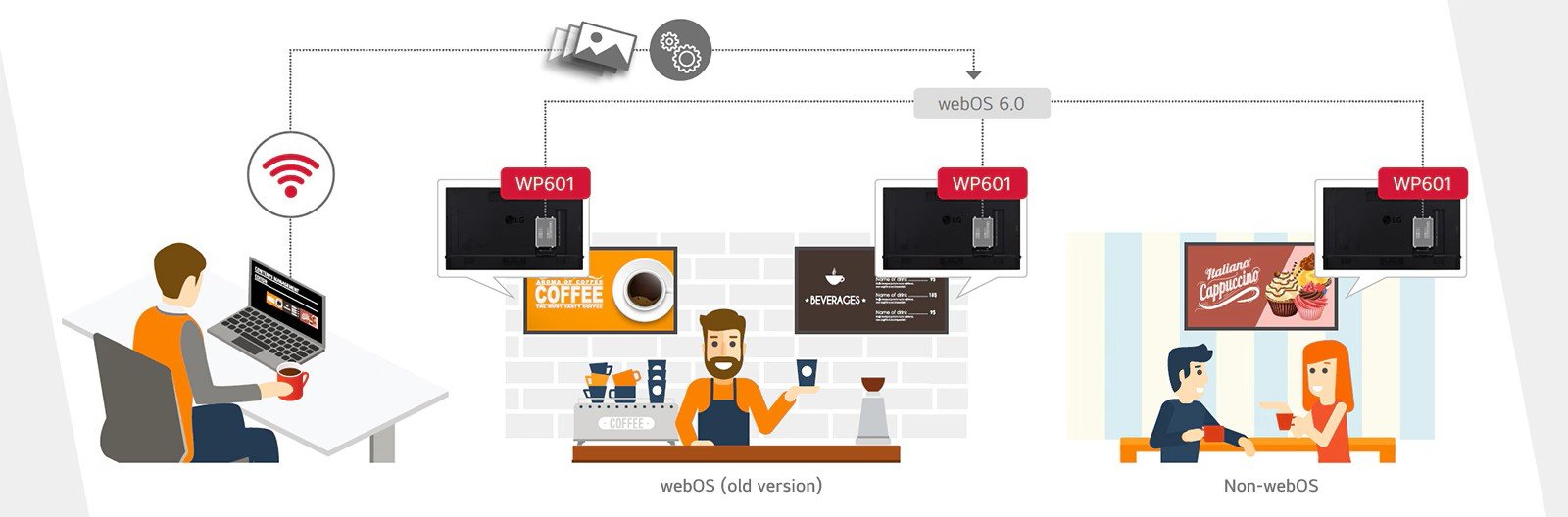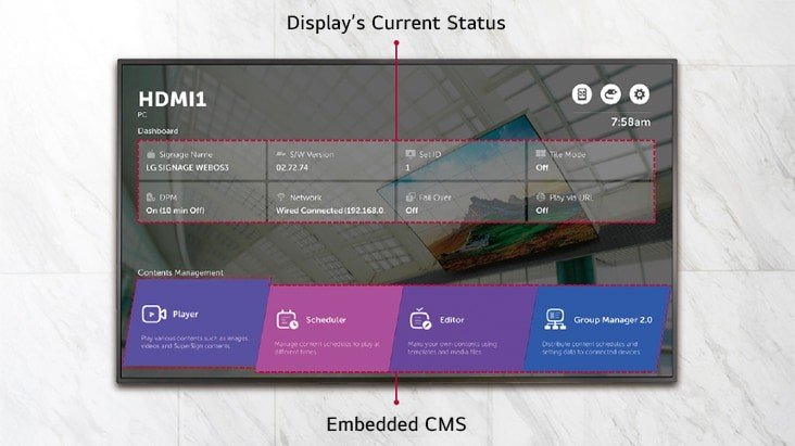 The WP601 webOS box operates webOS 6.0, the user-friendly LG smart signage platform, and is attached to existing LG digital signages and upgrades them regardless of their original platform. It can execute several tasks at once while providing smooth content playback, and provides an excellent user experience with an intuitive menu and convenient features.